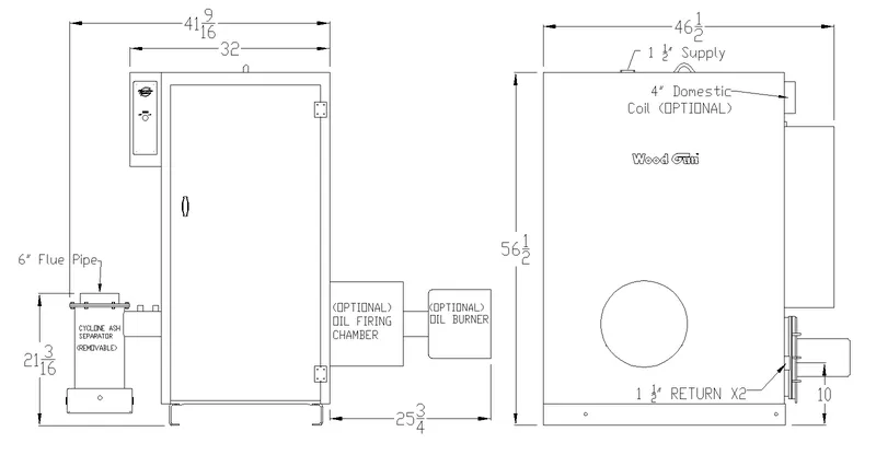 For #2 fuel oil, the oil backup can function in an automatic switch-over scenario, with fuel oil taking over when the boiler has exhausted its wood fuel. For other fuels, such as natural gas or propane, switch-over is manual only.